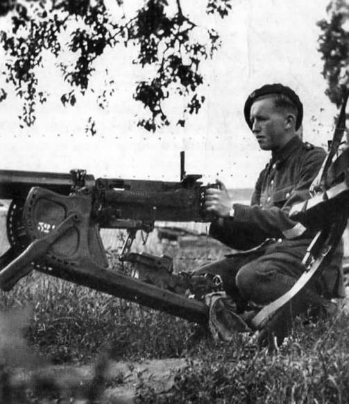 Des voix s'élèvent sur notre droite ... "Ne tirez pas ce sont des Anglais". De l'autre côté, sur le chemin de halage, arrive une moto montée par deux soldats. Je jette un regard, mais ce sont des Allemands. Je hurle "Tirez, mais tirez donc ! Ce sont des Allemands!" Ils sont à la hauteur du P.C.; une fusillade éclate, la moto quitte en vol plané le chemin pour disparaître dans la nature en contrebas du canal.