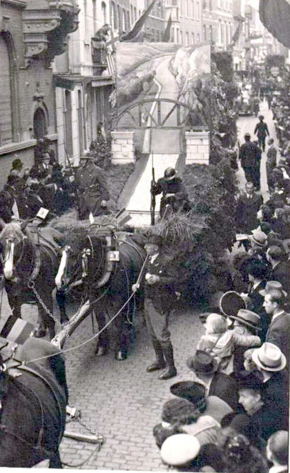 Les GVC représenté sur un des chars du cortège de la victoire à Nivelles, le 14 octobre 1945