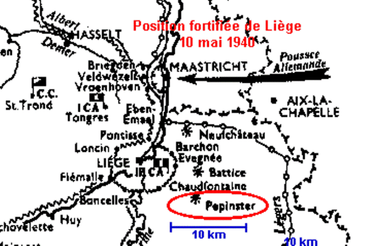 -Le fort est bombardé par les Stukas. Grâce au terrain schisto-gréseux, entonnoirs de 2 m de profondeur seulement. Tancrémont reste seul dans la P.F.L.