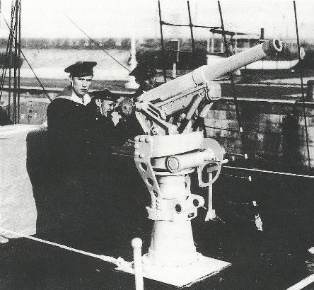 Un canon de 4.7 à bord d’un des navires de la ‘’Marine Belge’’ (Photo via ‘’Le Soir’’)