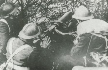 Nous voyons une vingtaine de biplans belges tourner dans le ciel puis se poser sur l'aérodrome voisin. Je me promène et voilà qu'arrive un groupe important de soldats français dont très peu ont encore leurs armes. J'ai à peine le temps d'apprendre qu'ils ont eu un engagement très dur qu'on entend le bruit d'un moteur d'avion. Aussitôt, c'est la débandade; les Français plongent dans les fossés et je reste seul debout car l'avion, qui débouche en rase-mottes, porte les cocardes françaises.
