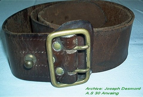 Salopettes, bérets, ceinturons, cartouchières, brassards, et écussons avec la tête de lion
