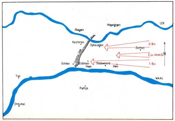 Ce jour-là, tôt matin, ce bataillon, commandé par le major Maurice PONCELET, attaqua avec l’appui de chars canadiens Sherman les troupes allemandes et SS hollandais) qui occupaient les localités hollandaises. HEUSDEN et OPHEUSDEN, à une vingtaine de kilomètres à l’ouest de ARNHEM et de NIMEGUE ! Au début de l’après-midi, nous occupions ces localités d’où l’ennemi s’enfuit. La poursuite fut entamée jusqu’à ce qu’un champ de mines l’arrête.