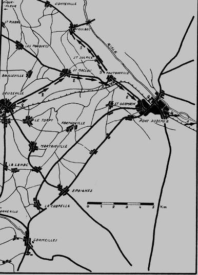 Le 5e peloton reprend son axe de reconnaissance de la veille : N 815 et Pont-Audemer.