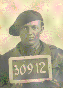 C’est le moment de la photo ; le prisonnier vient s’asseoir sur le tabouret face à l’objectif ; à une ficelle passée derrière le cou, on lui pend sur la poitrine une pancarte avec un numéro de matricule, son numéro de prisonnier de guerre, en l’occurrence, pour Geai, le « 30912 ».